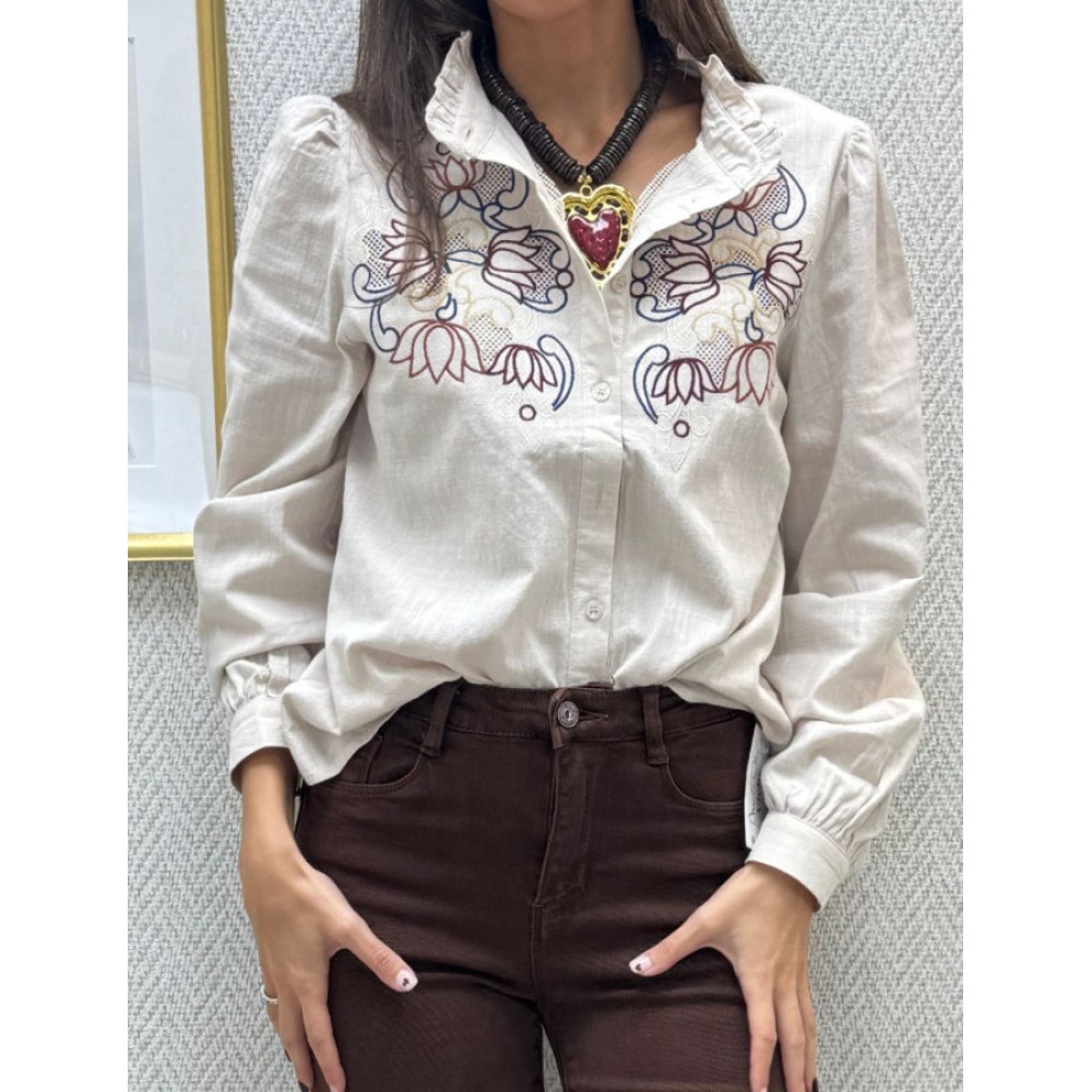 Camisa beige bordada