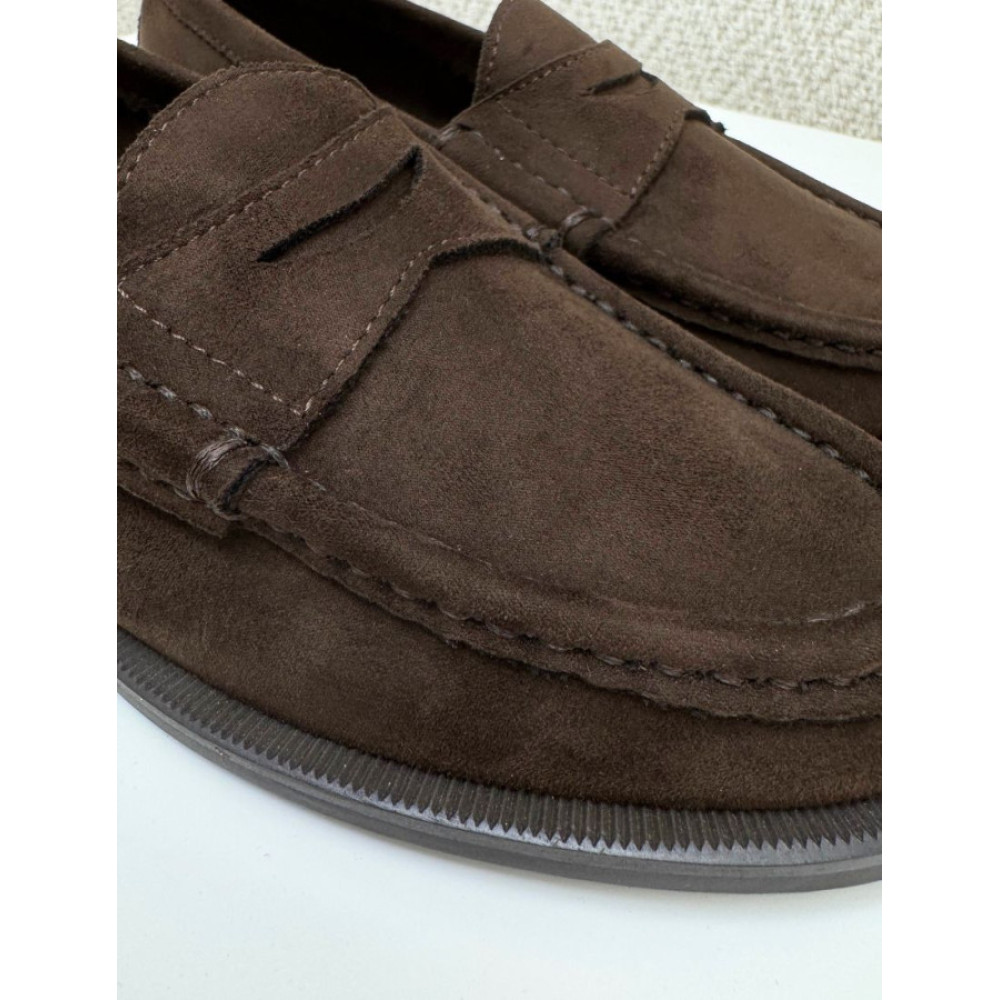 Mocasín plano color chocolate, en antelina. Copete subido y detalle de antifaz. Punta redonda.Altura de la suela 2 cm.
