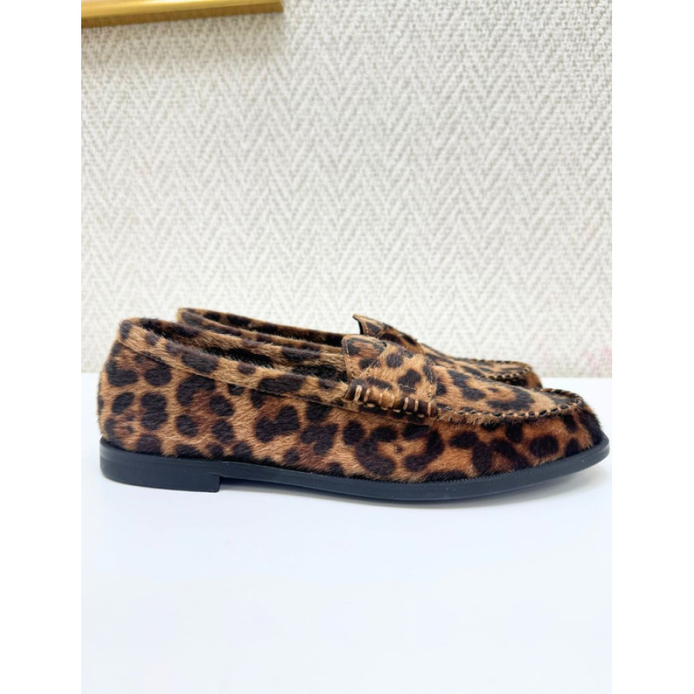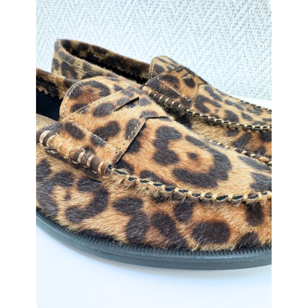 Mocasín plano. Copete subido y detalle de antifaz. Punta redonda.Corte de pelo.Altura de la suela 2 cm.