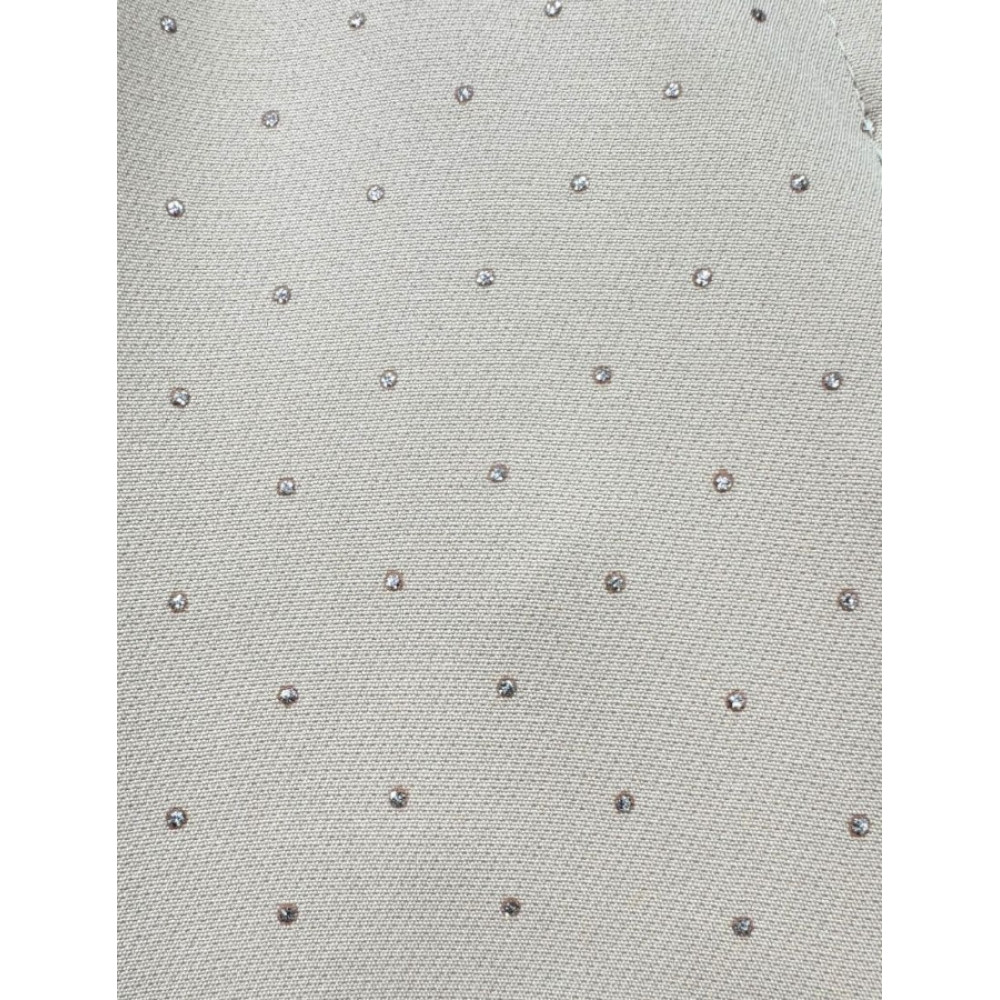 Pantalón de corte ligeramente globo, de tiro alto. Confeccionado en tejido de caída fluida con microaplicaciones de strass distribuidas de manera uniforme por toda la superficie. El diseño incluye bolsillos laterales de costura.