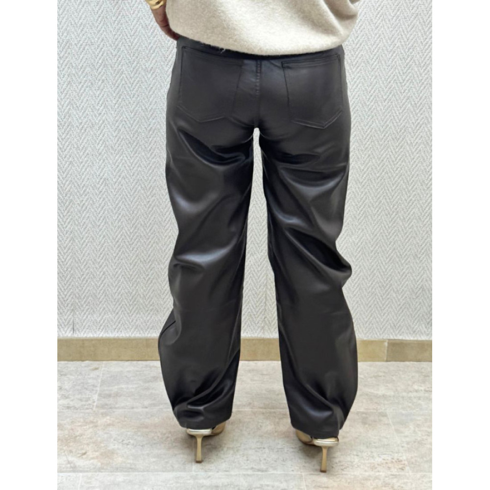 Pantalón de polipiel en color chocolate, el corte es globo irregular