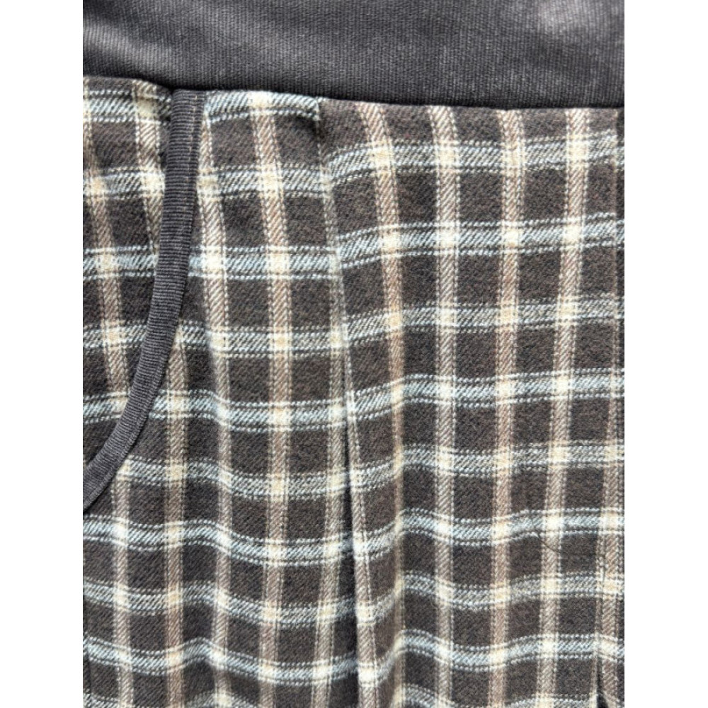 Pantalón de corte recto y silueta holgada. Presenta tiro alto. Confeccionado en tejido de paño de textura cálida, con un estampado de cuadros.