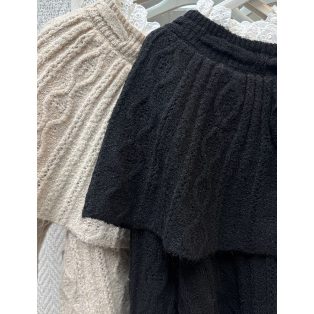 Jersey manga larga de puños ajustados. Confeccionado en tejido de punto con patrones de trenzas distribuidos. Destaca por un cuello alto con ribete de puntilla y una capa corta superpuesta tejida, con un lazo decorativo del mismo punto.