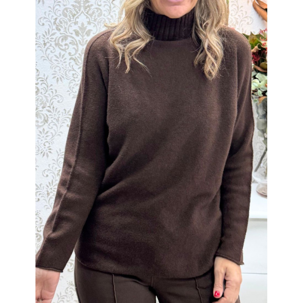 Jersey de punto de cuello alto tipo cisne en acabado acanalado. Presenta una silueta de corte recto y mangas largas caracterizadas por una costura exterior decorativa longitudinal.