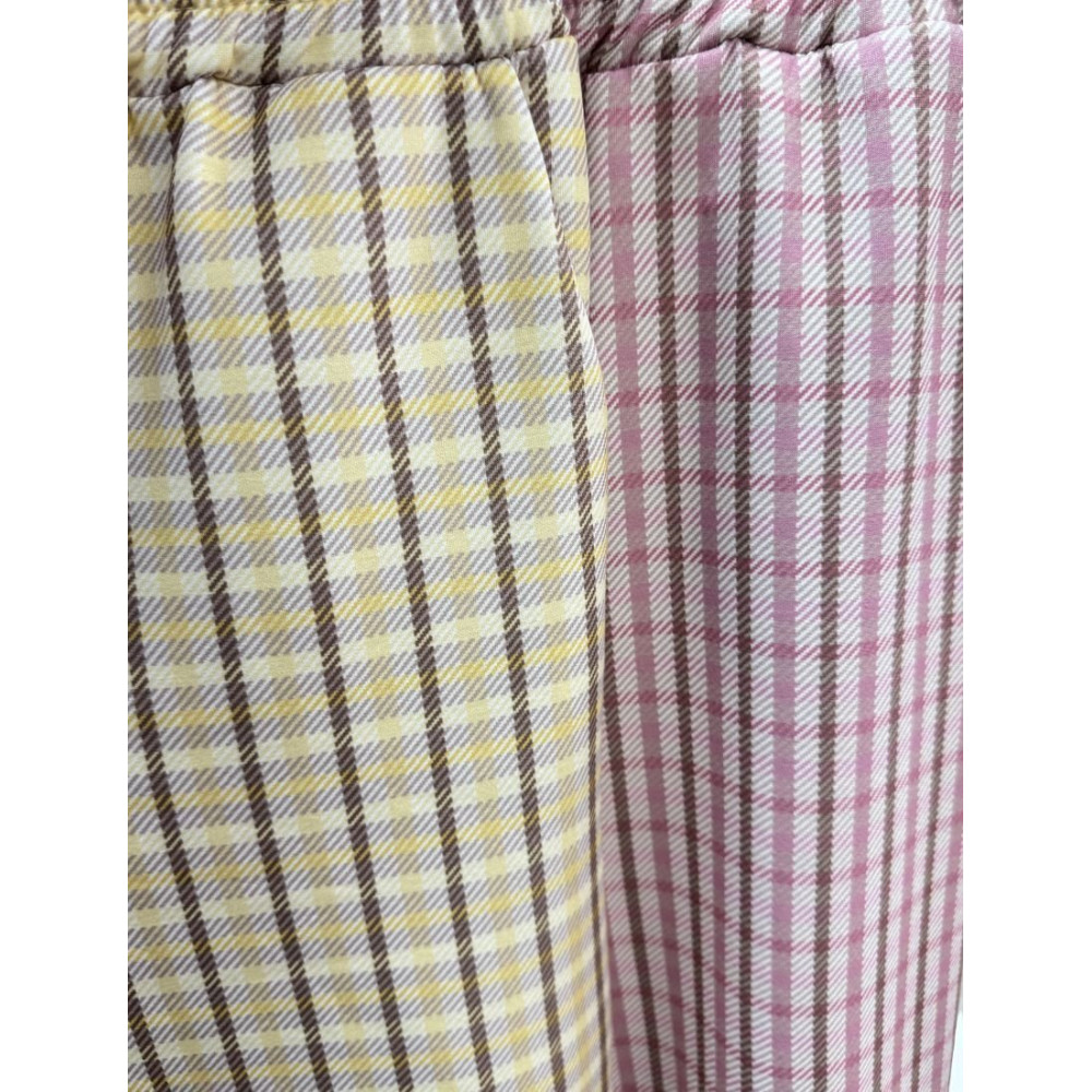 Pantalón de corte recto y silueta fluida presenta un diseño de estampado pata de gallo. Está confeccionado en un tejido ligero con caída, e incorpora una cintura elástica con cordón decorativo.